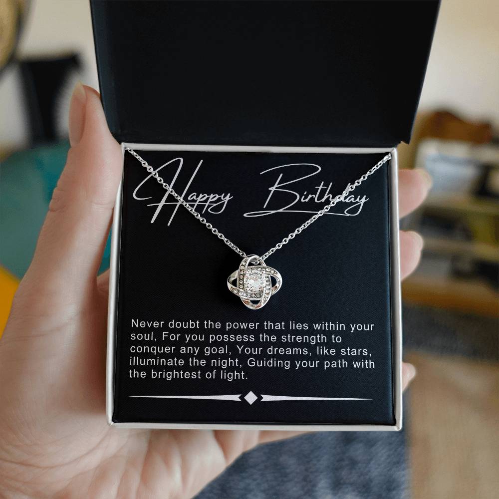 Imagine her reaction receiving this beautiful Love Knot Necklace. Representing an unbreakable bond between two souls, this piece features a beautiful pendant embellished with premium cubic zirconia crystals. Surprise your loved one with this gorgeous gift today!