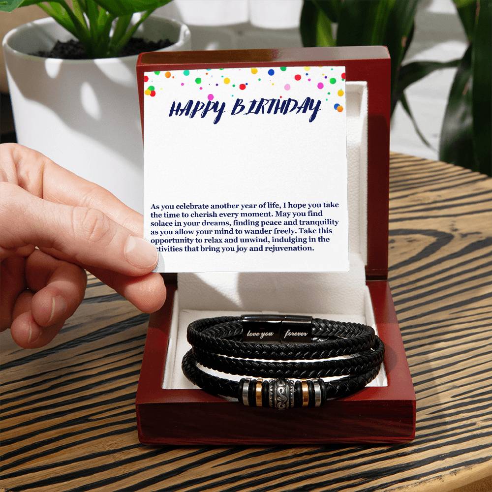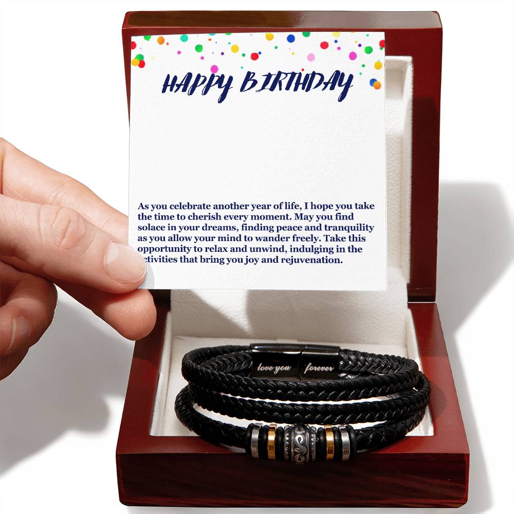 Are you looking for a gift as special as the man in your life? Then this Men's "Love You Forever" Bracelet is perfect! Engraved with a heartfelt message, this gift is great for birthdays, anniversaries, or just a thoughtful way to say "I love you". It's not just an accessory; it's a daily reminder of your love and appreciation. Whether it's your son, husband, or any deserving guy, this bracelet will have them grinning from ear to ear while rocking some serious style.