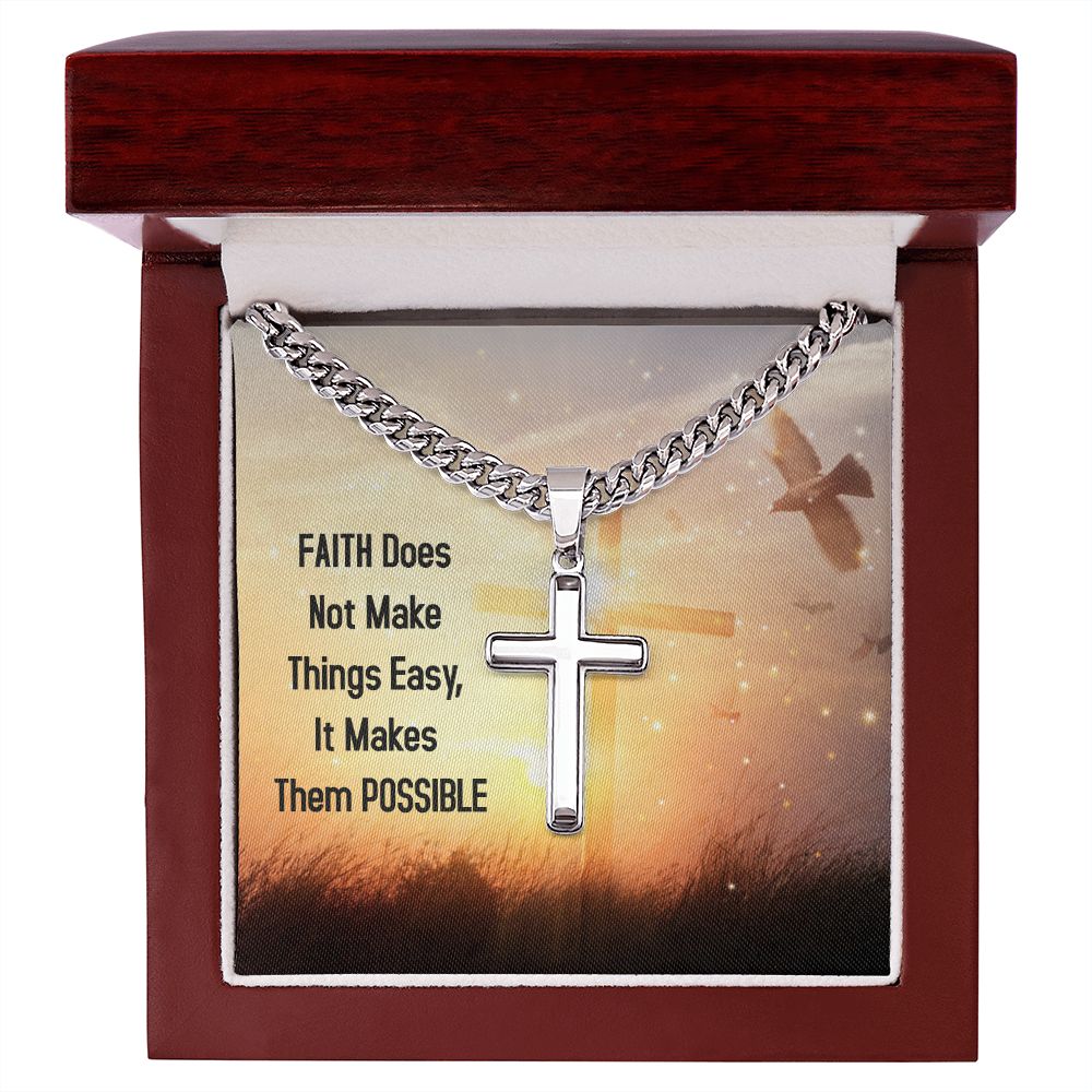 Wear your faith proudly with this Cuban Chain with Artisan Cross Necklace. Perfect for special occasions or everyday wear, this makes a wonderful gift idea for you or your loved one. It will surely be treasured for years to come!