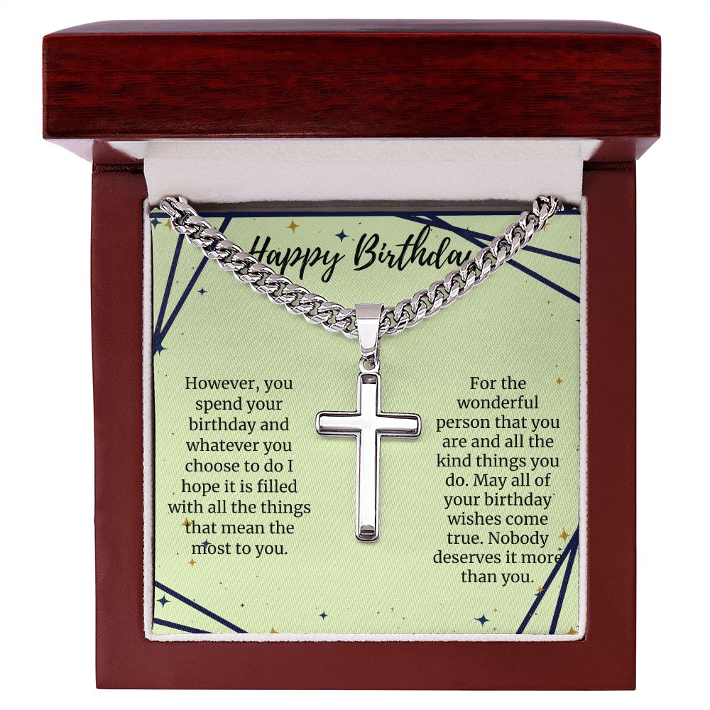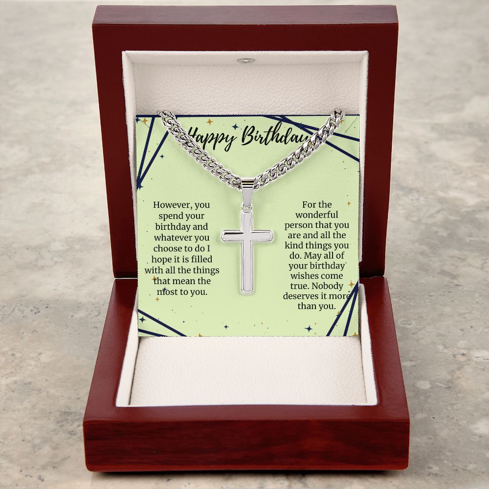 Wear your faith proudly with this Cuban Chain with Artisan Cross Necklace. Perfect for special occasions or everyday wear, this makes a wonderful gift idea for you or your loved one. It will surely be treasured for years to come!