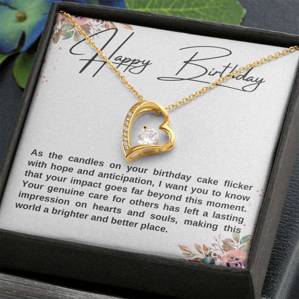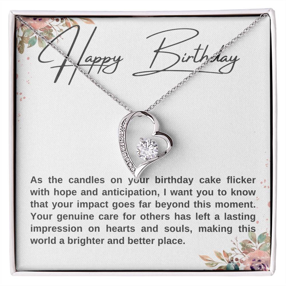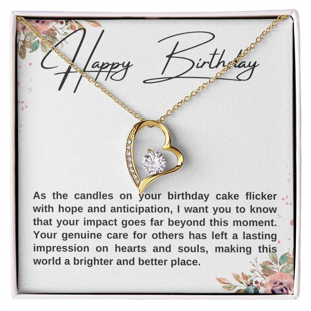 As the candles on your birthday cake flicker with hope and anticipation, I want you to know that your impact goes far beyond this moment. Your genuine care for others has left a lasting impression on hearts and souls, making this world a brighter and better place.