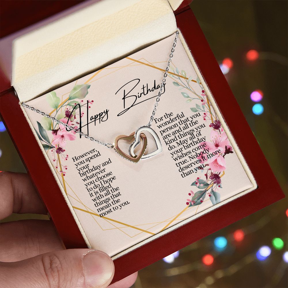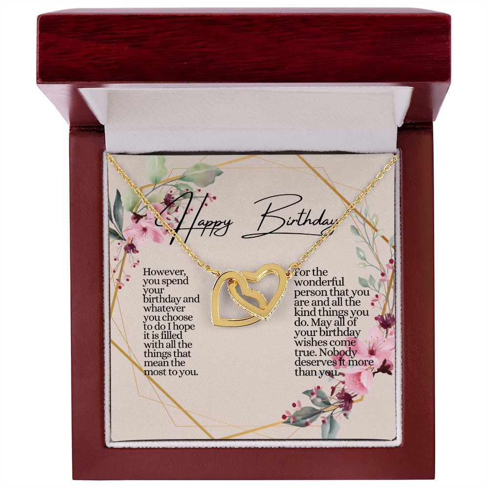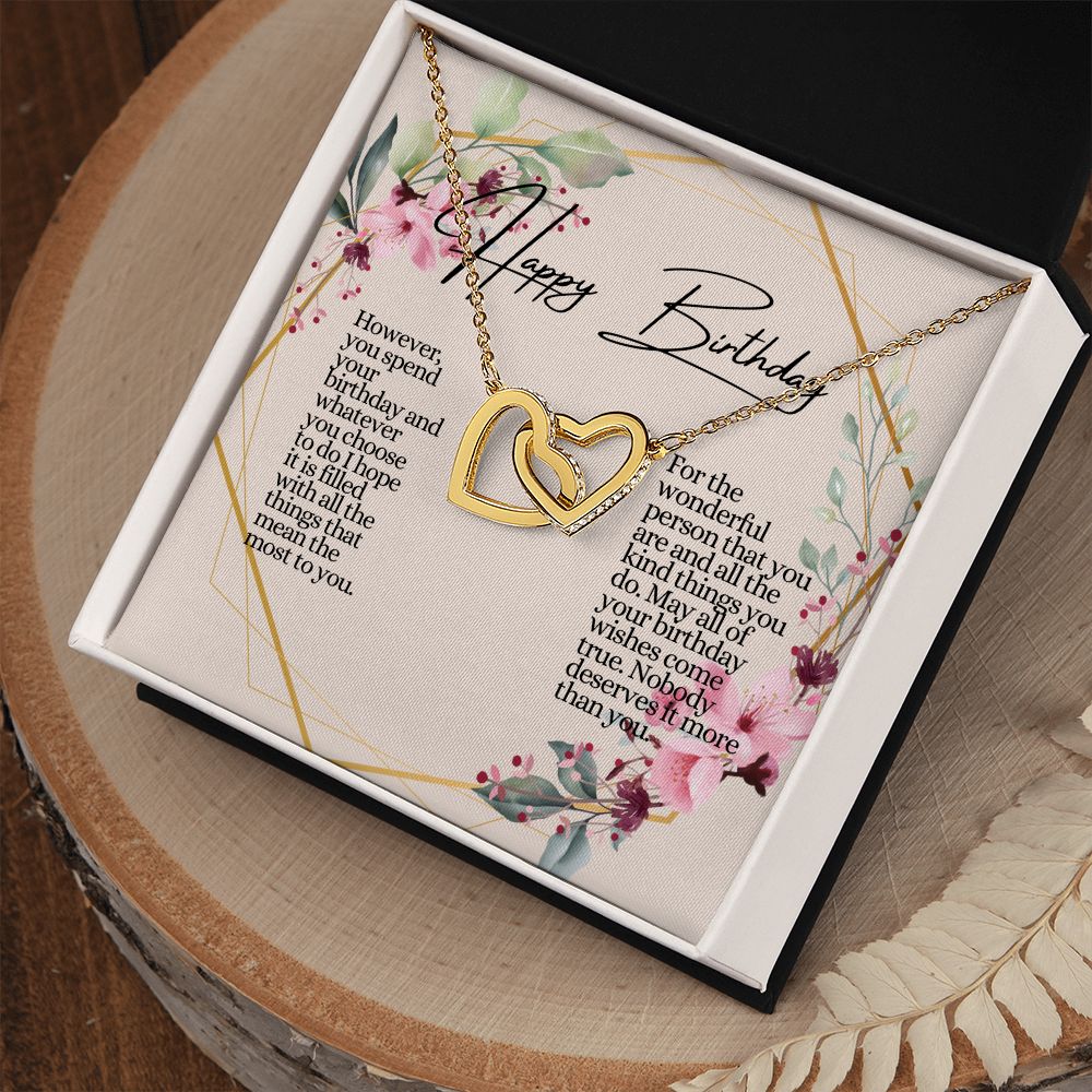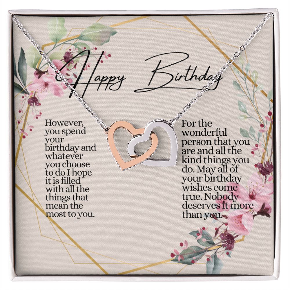 Give her the gift that symbolizes your never-ending love. Featuring two lovely hearts embellished with cubic zirconia crystals, this Interlocking Hearts necklace is the perfect accessory for everyday wear. Whether it's a memorable anniversary or a special birthday, make sure to dazzle your special someone by gifting them this stunning necklace.