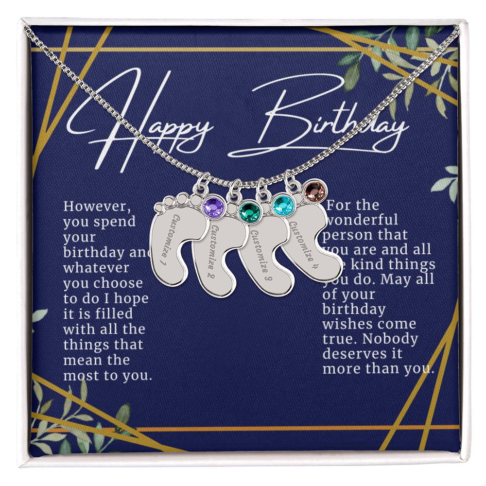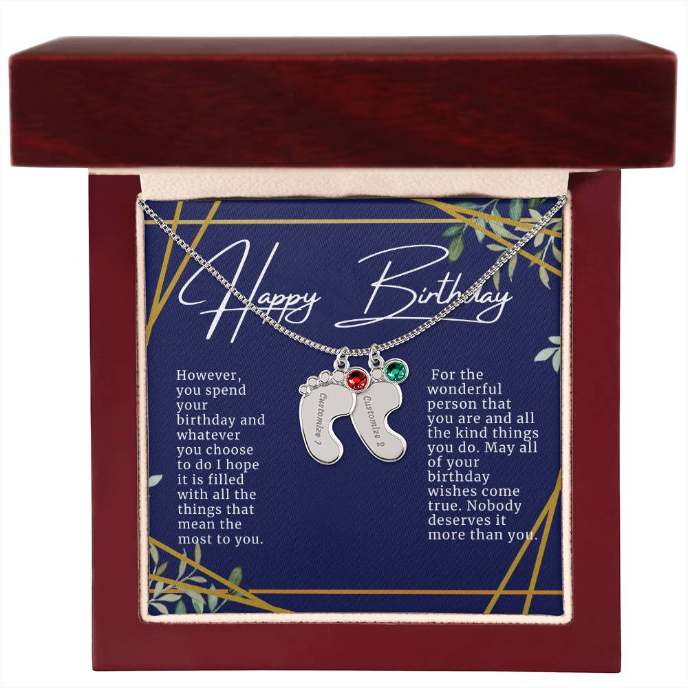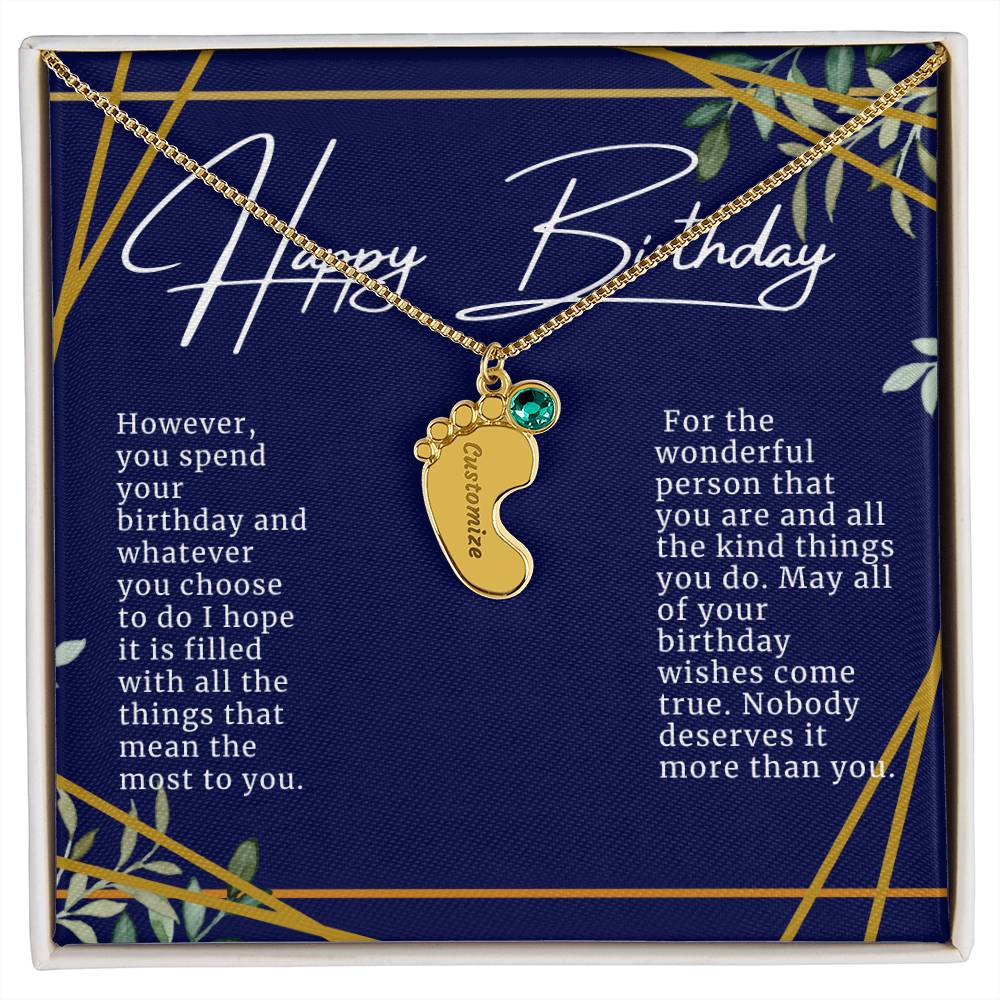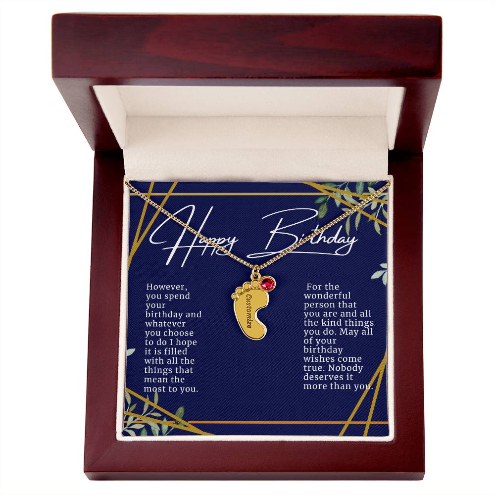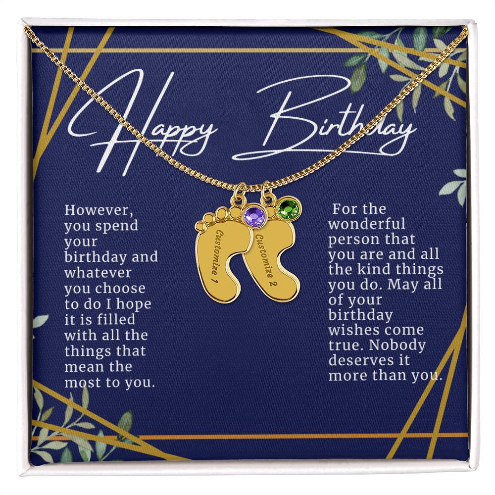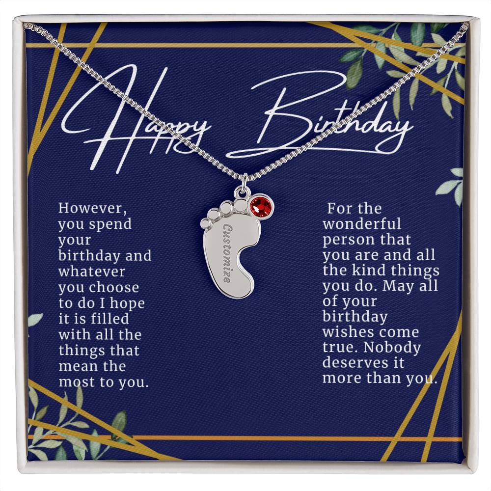 Celebrate the arrival of a newborn or cherish a precious memory with our Custom Baby Feet Necklace with Birthstone. Personalize your gift by engraving a name of your choice onto the pendant and choosing a crystal that correlates with the baby's birth month. And by picking multiple pendants, a custom present like this is perfect for moms and grandmothers with big families. This is a one-of-a-kind keepsake that will be treasured for a lifetime!