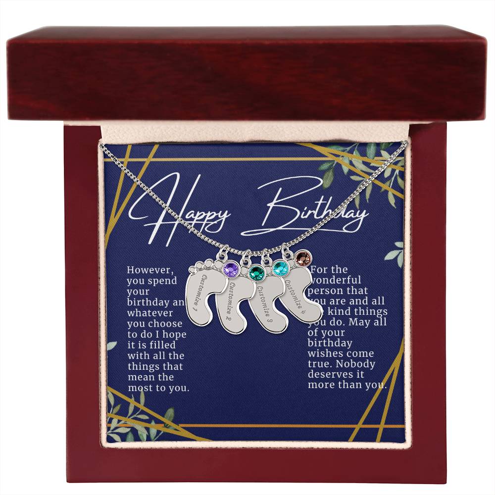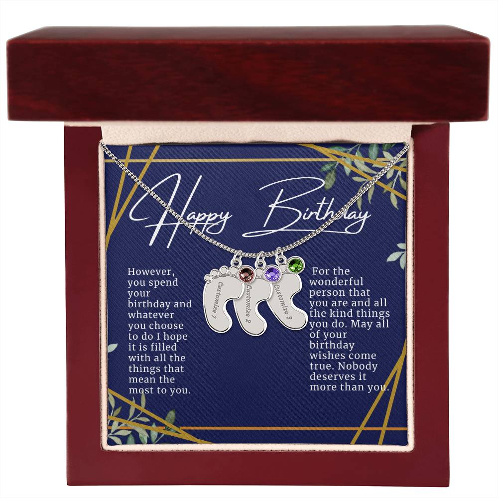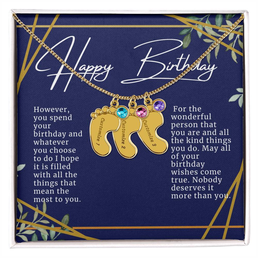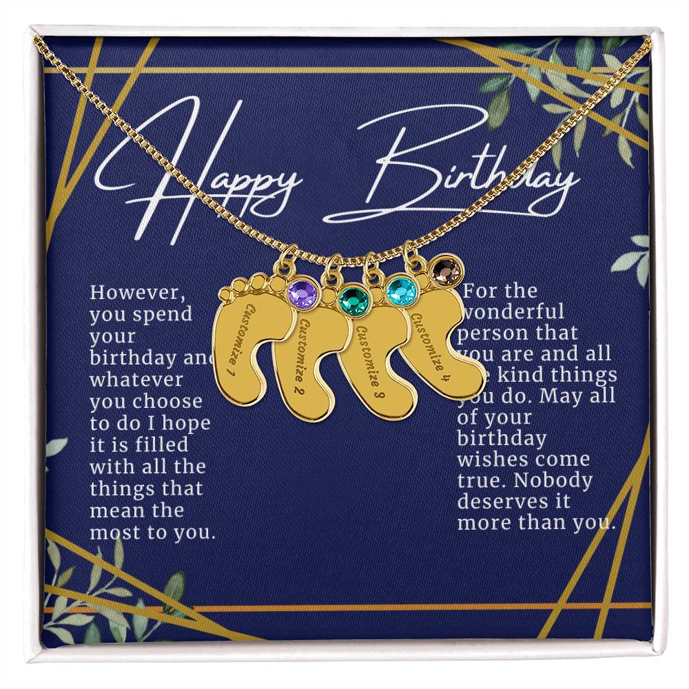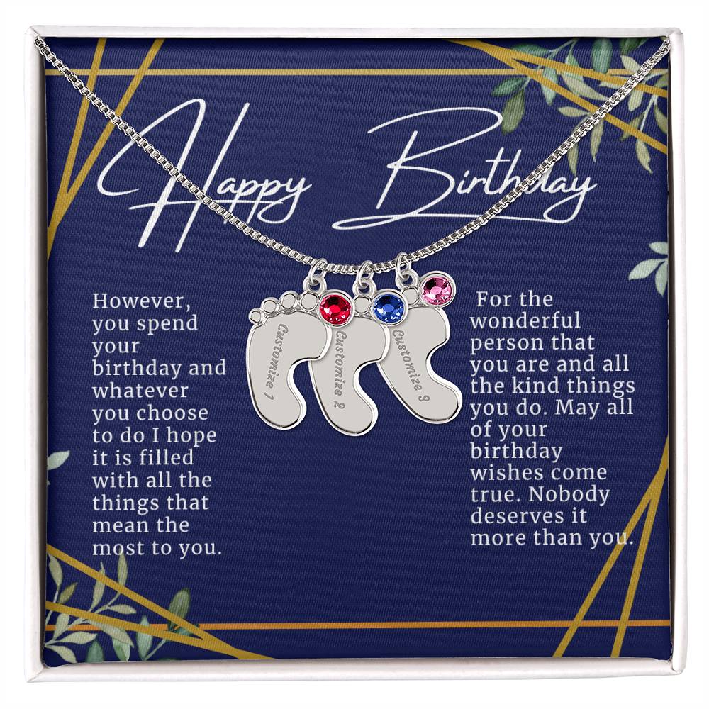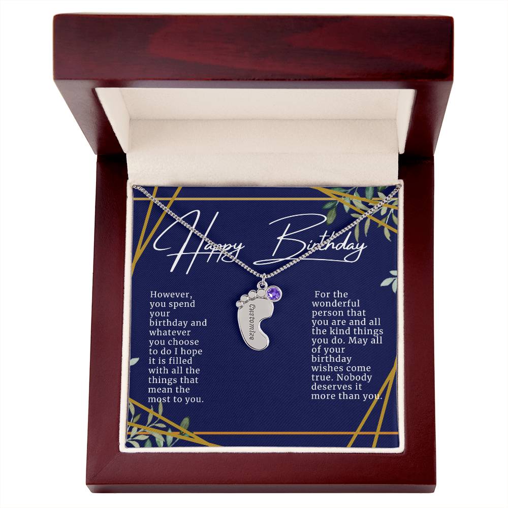 Celebrate the arrival of a newborn or cherish a precious memory with our Custom Baby Feet Necklace with Birthstone. Personalize your gift by engraving a name of your choice onto the pendant and choosing a crystal that correlates with the baby's birth month. And by picking multiple pendants, a custom present like this is perfect for moms and grandmothers with big families. This is a one-of-a-kind keepsake that will be treasured for a lifetime!