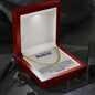 Your piece is lovingly packaged in a complimentary soft touch box for easy gifting. Elevate your presentation by upgrading to the mahogany style luxury box, which features a brilliant LED spotlight.