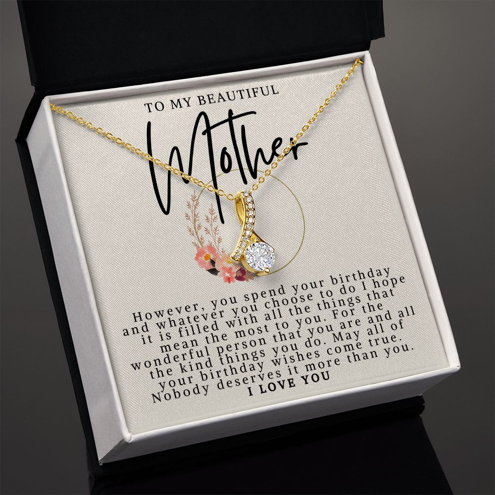 Imagine her reaction when she opens this stunning gift! The Alluring Beauty necklace features a petite ribbon shaped pendant that is sure to dazzle your special someone. Whether it's a birthday or anniversary, make sure to get her a gift she will love for years to come.